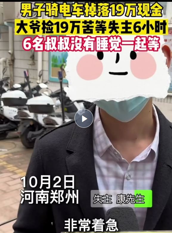 大爺撿到19萬(wàn)元現(xiàn)金原地等6小時(shí)