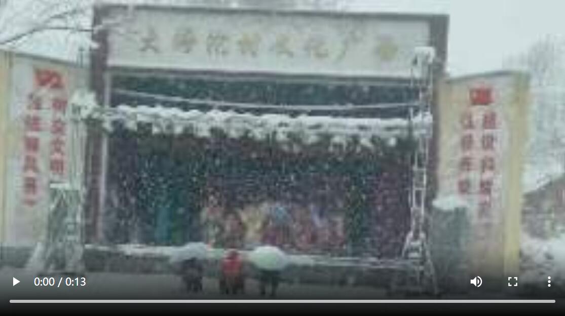 雪天臺下觀眾寥寥無幾,臺上演員堅持演完全