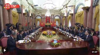 當(dāng)?shù)貢r(shí)間12月13日上午,中共中央總書記、國家主席習(xí)近平在河內(nèi)主席府同越南國家主席武文賞舉行會(huì)談。