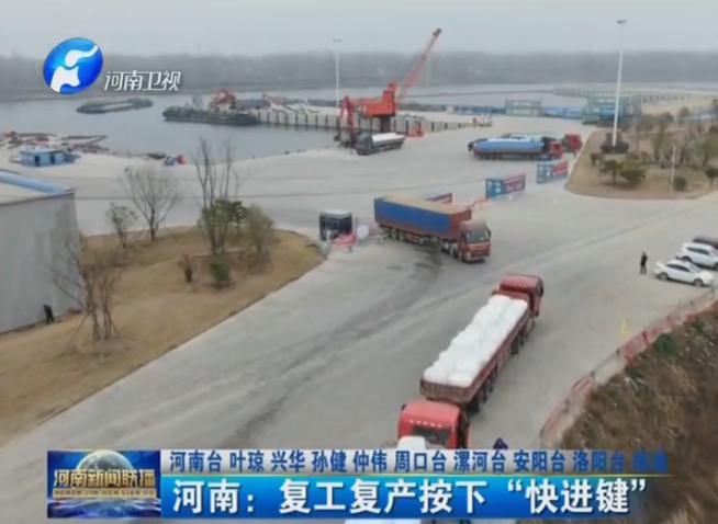 3月3號,河南衛(wèi)視《河南新聞聯(lián)播》播發(fā)《河南:復工復產(chǎn)按下“快進鍵”》的報道,聚焦周口中心港在復工復產(chǎn)中采取了一系列措施以及目前的運營情況。