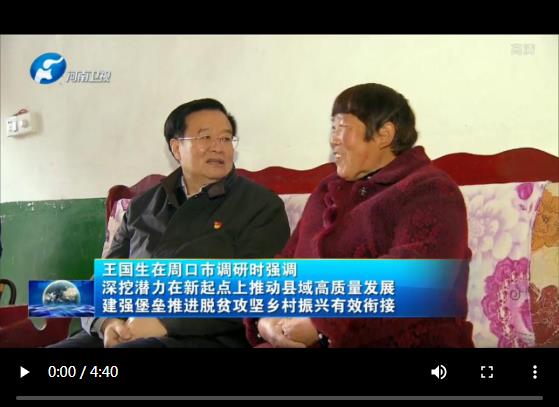 11月30日至12月1日,省委書記王國生到周口市項城市、沈丘縣、鄲城縣、太康縣,宣講黨的十九屆五中全會精神,調(diào)研脫貧攻堅、村“兩委”換屆、縣域經(jīng)濟等工作,就“十四五”規(guī)劃編制征求意見建議。