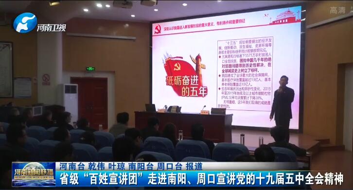 本臺訊 連日來,學(xué)習(xí)貫徹黨的十九屆五中全會(huì)精神省級“百姓宣講團(tuán)”走進(jìn)南陽、周口宣講全會(huì)精神。