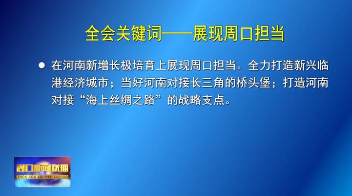 本臺(tái)訊 市委四屆十二次全會(huì)暨市委經(jīng)濟(jì)工作會(huì)議指出:“十四五”時(shí)期,周口要主動(dòng)對(duì)標(biāo)對(duì)表,強(qiáng)化目標(biāo)導(dǎo)向、問題導(dǎo)向和結(jié)果導(dǎo)向,謀劃實(shí)施一批具有突破性、帶動(dòng)性、抓手性的戰(zhàn)略行動(dòng),在全面建設(shè)社會(huì)主義現(xiàn)代化河南征程中展現(xiàn)周口擔(dān)當(dāng)。