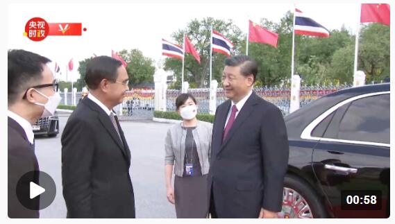 習(xí)近平抵達(dá)總理府時(shí),巴育熱情迎接。泰國(guó)總理府高官、最高司令及陸、海、空軍司令等列隊(duì)歡迎。儀仗隊(duì)整齊排列,行注目禮。