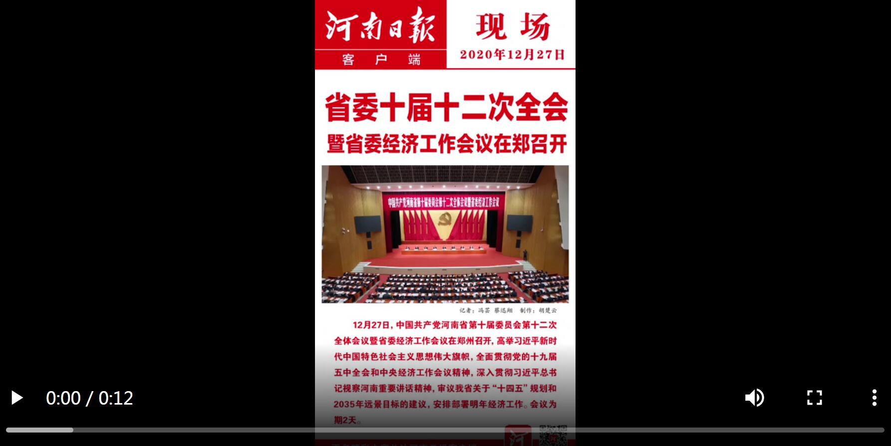12月27日,中國共產(chǎn)黨河南省第十屆委員會(huì)第十二次全體會(huì)議暨省委經(jīng)濟(jì)工作會(huì)議在鄭州召開,高舉習(xí)近平新時(shí)代中國特色社會(huì)主義思想偉大旗幟,全面貫徹黨的十九屆五中全會(huì)和中央經(jīng)濟(jì)工作會(huì)議精神,深入貫徹習(xí)近平總書記視察河南重要講話精神,審議我省關(guān)于“十四五”規(guī)劃和2035年遠(yuǎn)景目標(biāo)的建議,安排部署明年經(jīng)濟(jì)工作。會(huì)議為期2天。