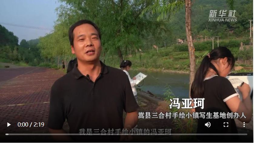 美術(shù)專業(yè)畢業(yè)的馮亞珂在鄭州辦過(guò)美術(shù)培訓(xùn)班,曾帶學(xué)生四處寫生,也讓他看到了原生態(tài)青山、小溪、民居的價(jià)值。2015年,馮亞珂帶著籌來(lái)的150萬(wàn)元資金回到家鄉(xiāng),勸說(shuō)父母拆掉自家舊房,建起了村里首家農(nóng)家賓館,接待寫生學(xué)生。憑借多年積累的畫室資源,2016年開(kāi)張半年,便帶動(dòng)三合村接待游客2000人次。