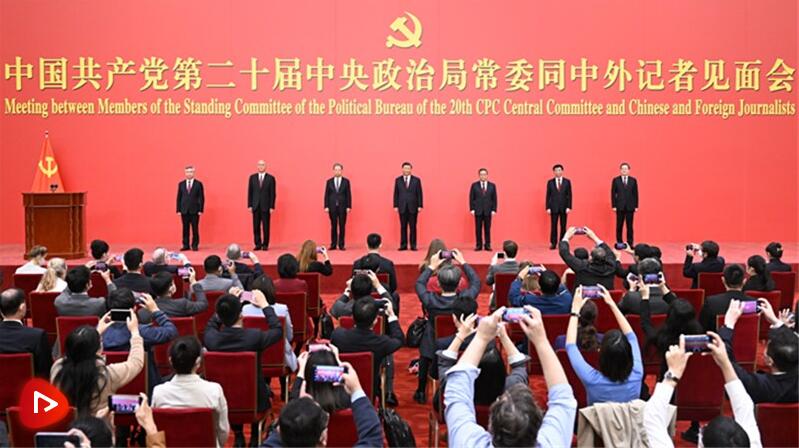“我們一定牢記黨的性質(zhì)和宗旨,牢記自己的使命和責(zé)任,恪盡職守、勤勉工作,決不辜負(fù)黨和人民重托。”23日中午,在中國(guó)共產(chǎn)黨第二十屆中央委員會(huì)第一次全體會(huì)議上當(dāng)選為中共中央總書(shū)記的習(xí)近平,率領(lǐng)新一屆中央政治局常委在人民大會(huì)堂同采訪黨的二十大的中外記者親切見(jiàn)面。習(xí)近平總書(shū)記發(fā)表重要講話時(shí)強(qiáng)調(diào):“藍(lán)圖已經(jīng)繪就,號(hào)角已經(jīng)吹響。我們要踔厲奮發(fā)、勇毅前行,努力創(chuàng)造更加燦爛的明天。”