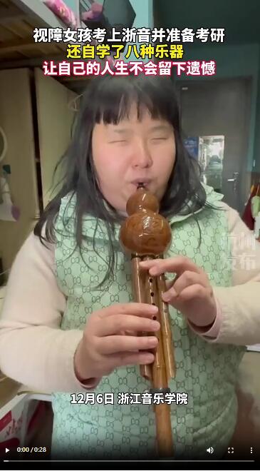 視頻中熟練吹奏8種樂器的視障姑娘叫王怡文
