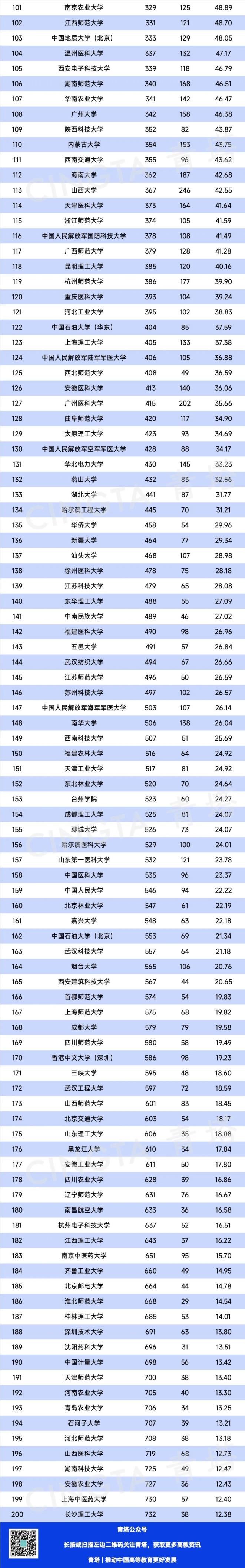最新自然指數(shù)排名中國(guó)內(nèi)地高校TOP200名單如下: