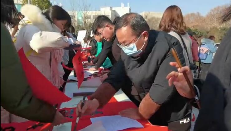 “2021年新年到來之際,為了濃厚校園文化氛圍,傳承中華優(yōu)秀傳統(tǒng)文化,鍛煉書法專業(yè)學(xué)生書寫能力,特地組織了這樣一場免費(fèi)送春聯(lián)活動。所有來現(xiàn)場的師生都可以免費(fèi)領(lǐng)到一份春聯(lián)。”周口師范學(xué)院美術(shù)學(xué)院桑林院長介紹說。