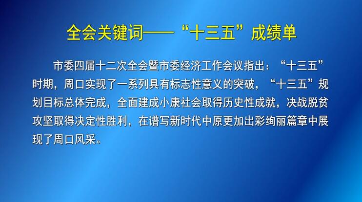 本臺訊:市委四屆十二次全會暨市委經(jīng)濟工作會議指出:“十三五”時期,周口實現(xiàn) 了一系列具有標志性意義的突破,“十三五”規(guī)劃目標總體完成,全面建成小康社會取得歷史性成就,決戰(zhàn)脫貧攻堅取得決定性勝利,在譜寫新時代中原更加出彩絢麗篇章中展現(xiàn)了周口風采。