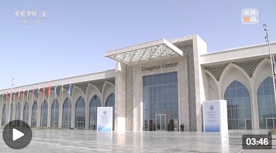 15日上午,習主席乘車抵達撒馬爾罕國際會議中心。這座建筑是今年4月新落成的。接待習主席來訪,是它首次用作國事活動舉辦場地。