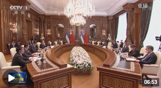 在撒馬爾罕國際會議中心,習近平主席同米爾濟約耶夫總統(tǒng)舉行正式會談。