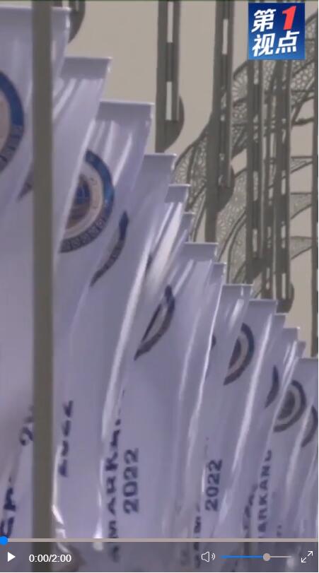 會議中心外,艷陽高照,與會各成員國、觀察員國國旗和上合組織會旗迎著澤拉夫尚河谷的勁風(fēng)高高飄揚(yáng)。